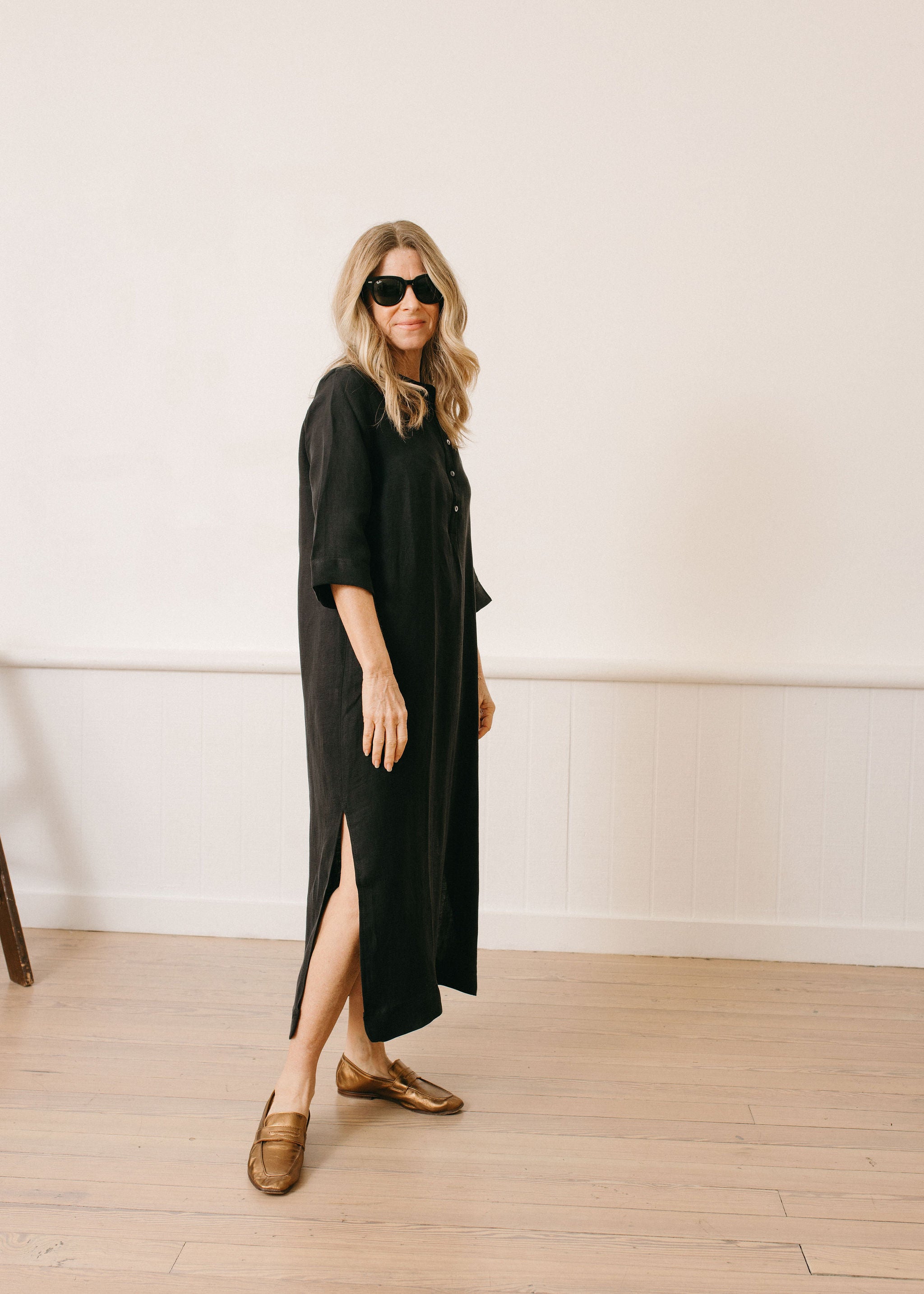 The Mara comes in a very soft 42% cupro 58% linen blend in black. This fabric offers a luxurious feel and a beautiful drape and texture.