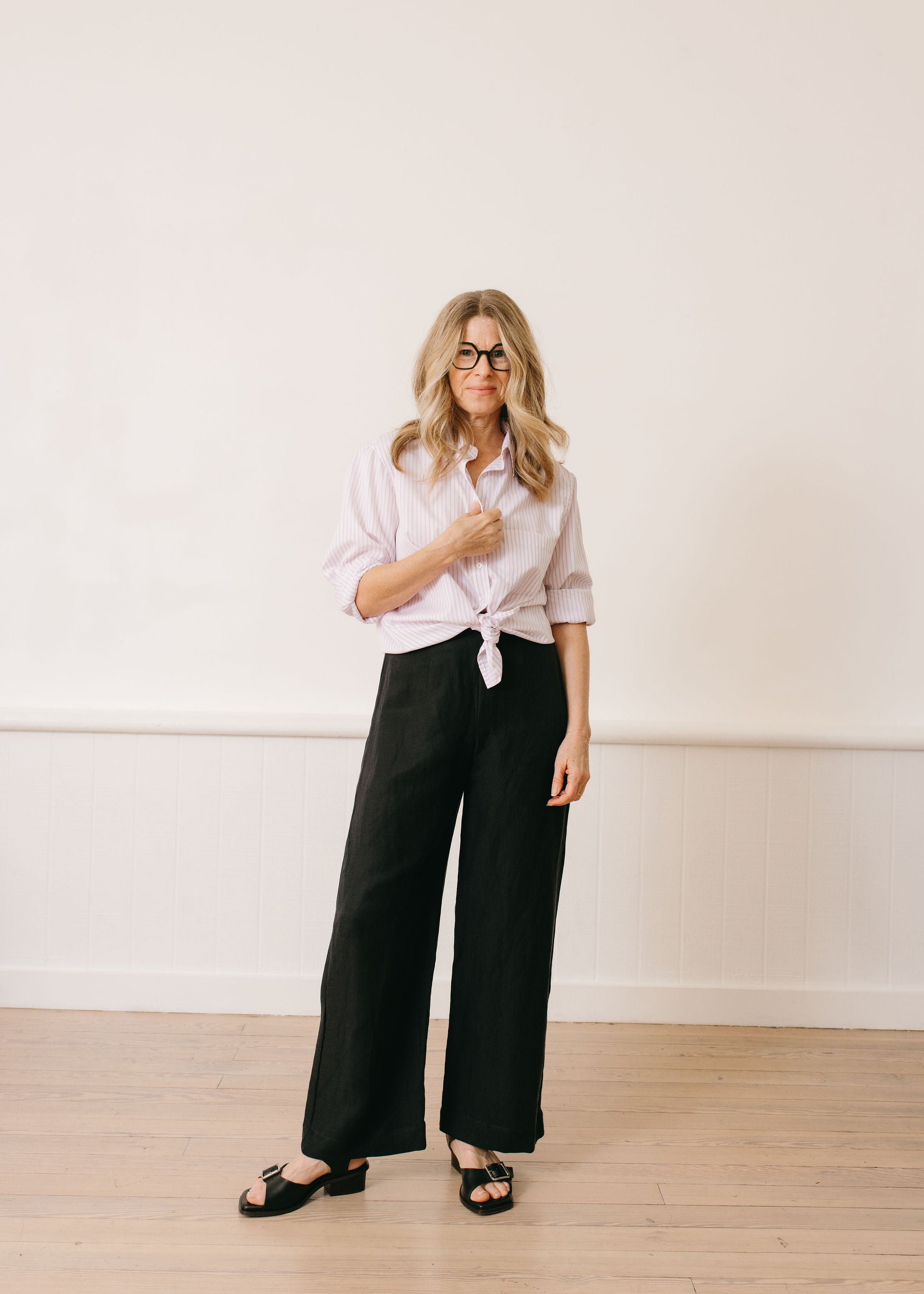 The Ali Long is made in a very soft 42% cupro 58% linen blend in black. This fabric offers a luxurious feel and a beautiful drape and texture.